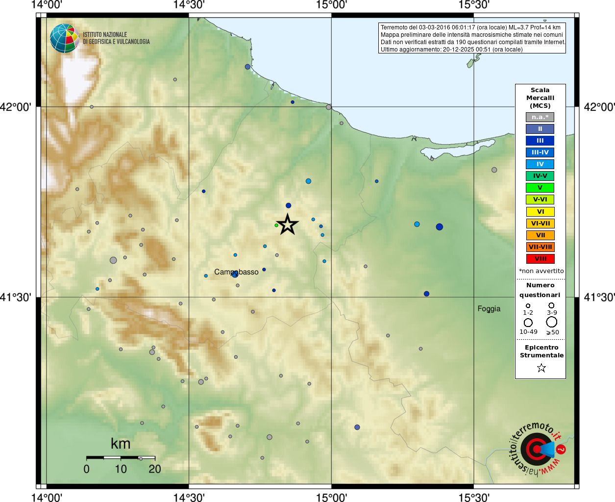 - 190 utilizzati per elaborare la mappa, su un totale di 201