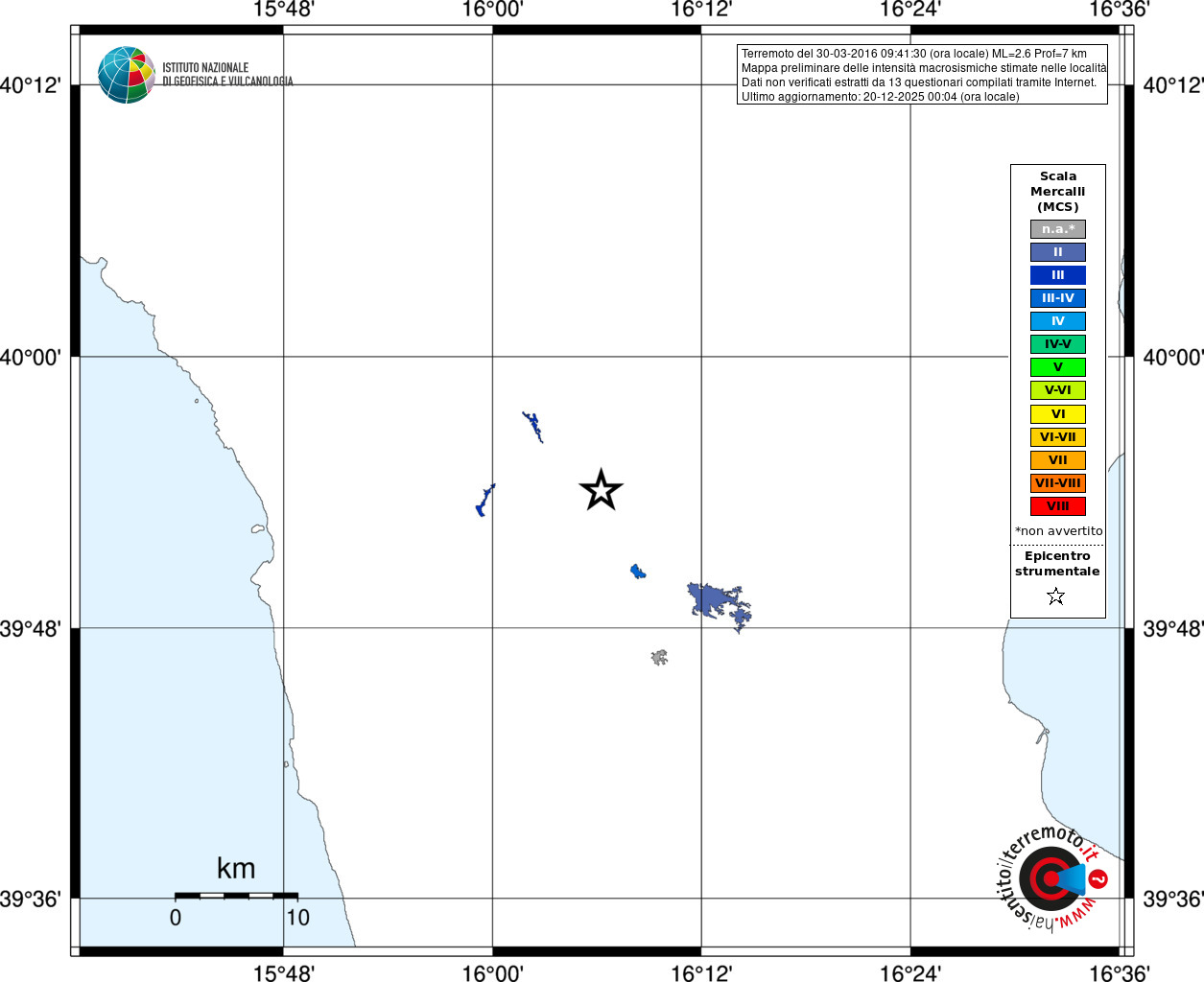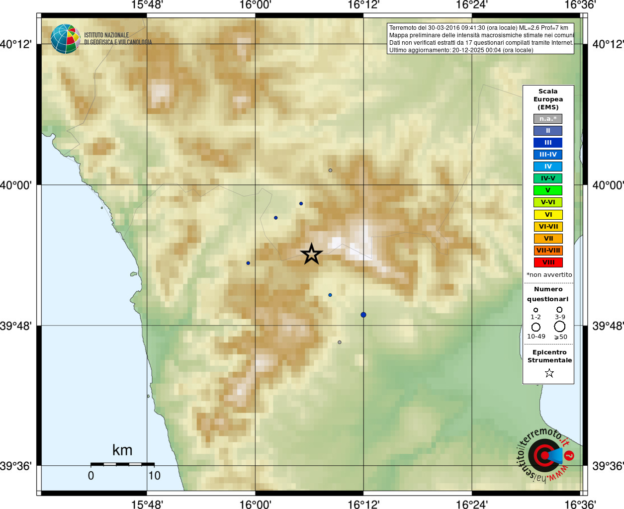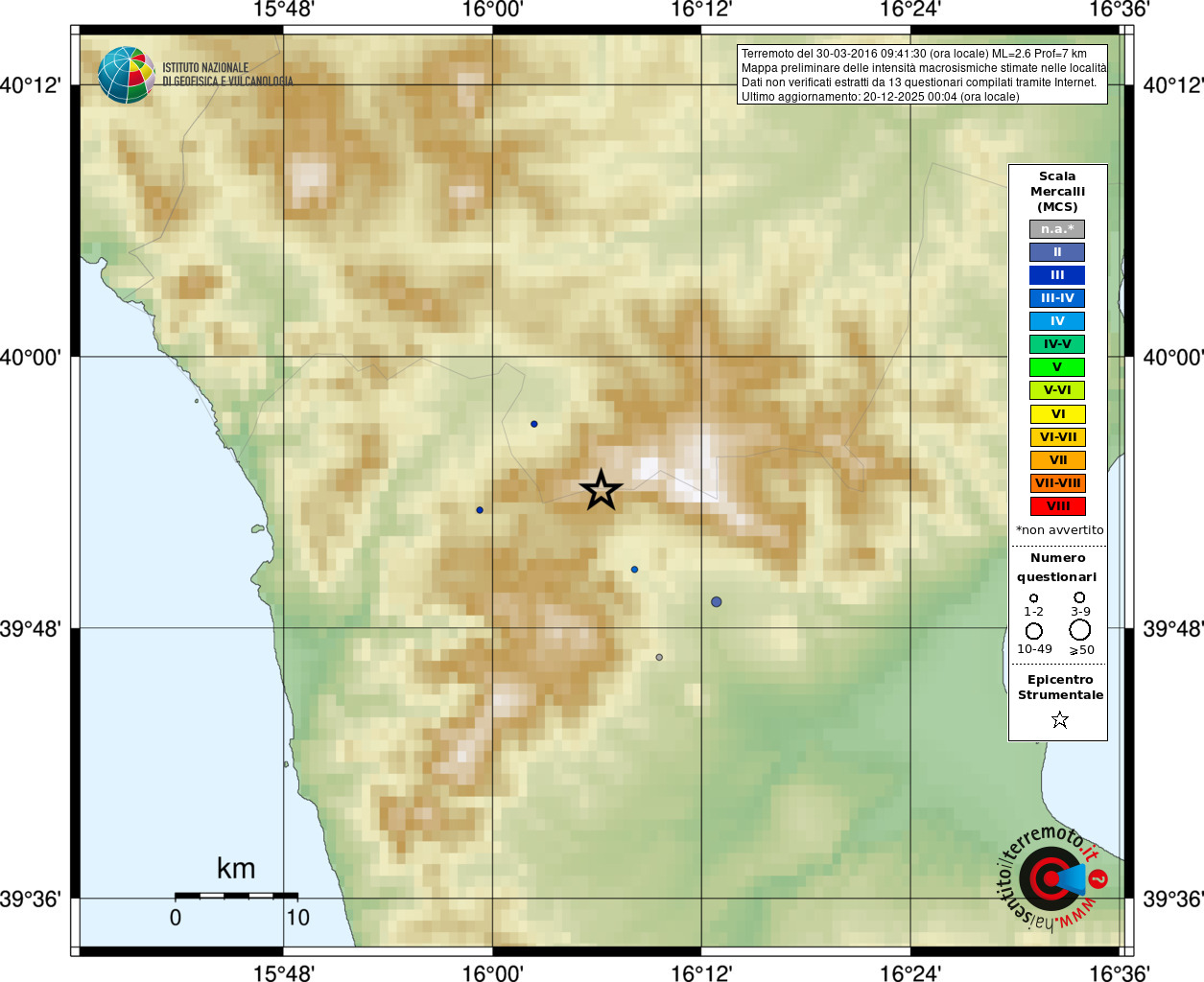 - Coordinate Epicentrali