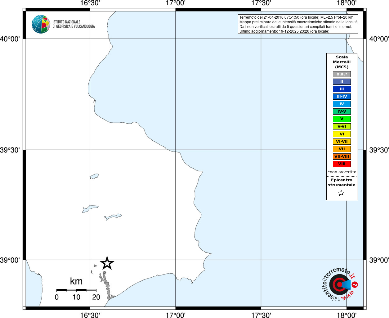 - Coordinate Epicentrali