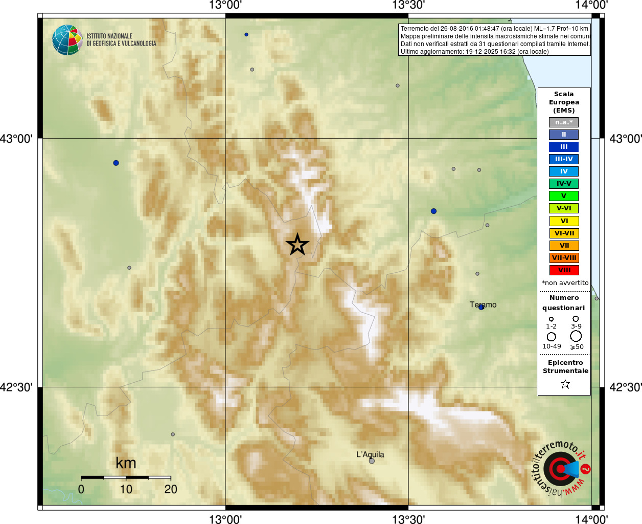 - Coordinate Epicentrali