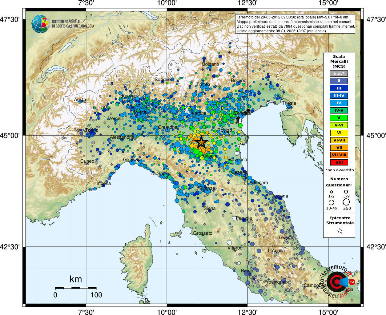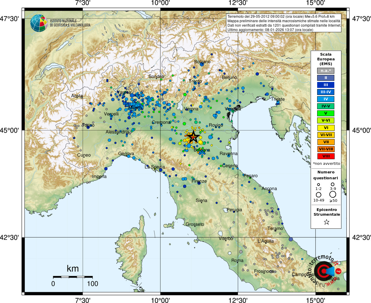 Evento sismico del 2012-05-29T07:00:02Z (data e ora UTC)