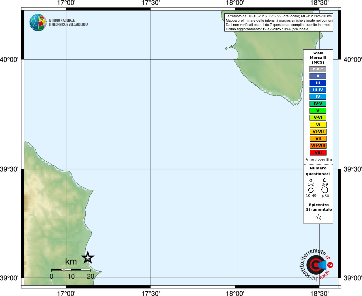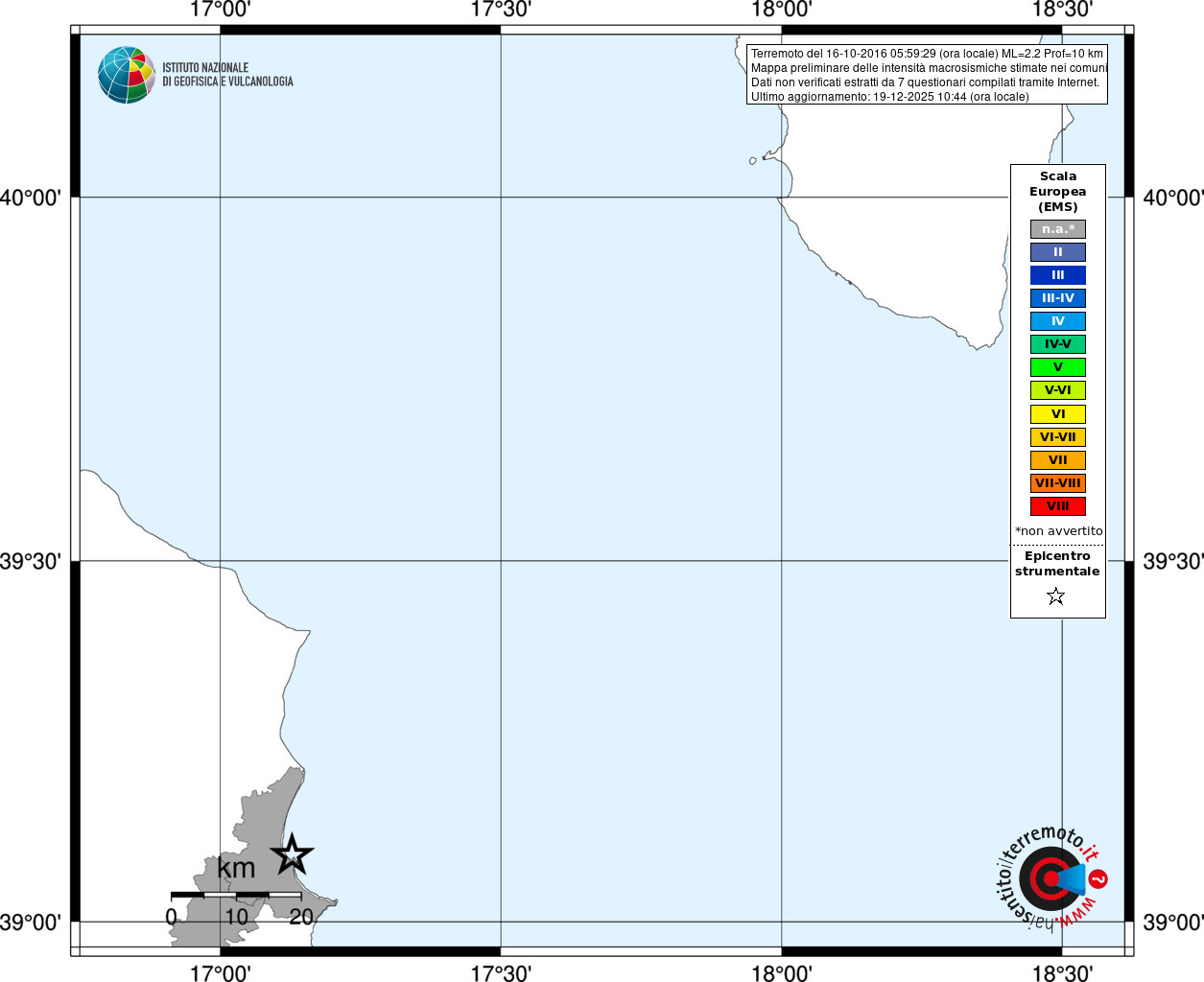 - Coordinate Epicentrali